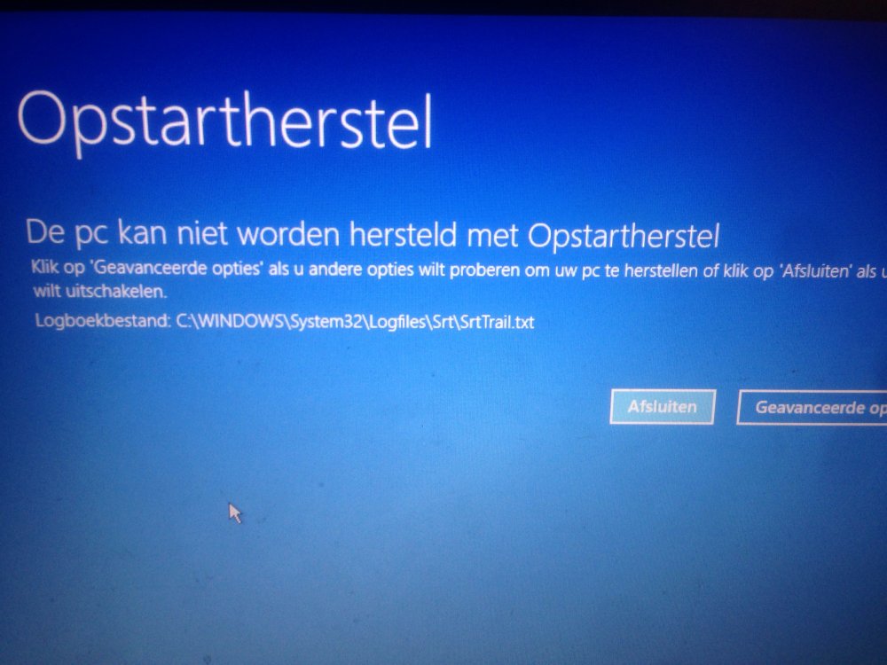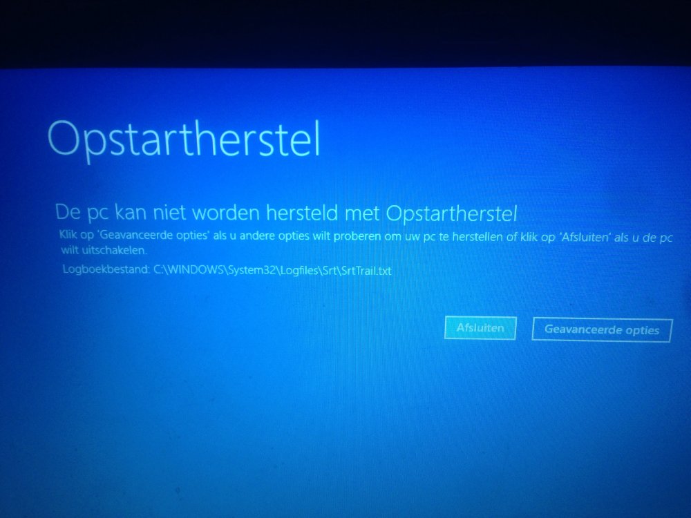 Hey, ik zag op het forum hoe je Veilige Modus met CMD kan inschakelen heb ik gedaan en OpstartHerstel uitgevoerd! Alleen nu geeft hij een ander bericht aan... -