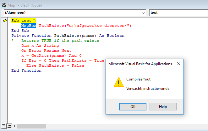 Bakerman Het pad dat ik u doorgegeven heb daar staat de map 'afgewerkte diensten' en de werkbladen. N u heb ik deze gekopieerd naar usb stick, omdat ik ni direct op de originele werkbladen wil uitproberen. Ik heb een copie genomen van de code en aangepast naar f:\ afgewerkte map. Misschien heeft dit ermee te maken dat uw pscheppers,xlms niet werkt bij. Wanneer ik de macro start wordt het werkblad weggeschreven naar f:\ afgewerkte diensten, de juiste map,dus het werkt wel. Patrick