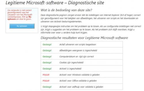Voor mij is dit probleem in ieder geval opgelost, ik hoop dat andere gebruikers er ook iets aan hebben. Via de 'Aangepast' knop op Microsoft Update heb ik twee optionele hardware updates kunnen uitvoeren (audio en printer) en zes optionele software updates, iets wat voorheen onmogelijk was. PS: Indien 'Microsoft Helpt' nog het resultaat van de MGADIAG tool wenst te zien, dan kan ik dit indien gewenst hier nog steeds posten. Ik had deze tool al verschillende keren gebruikt en al aangegeven dat mijn systeem als 'Genuine' gedetecteerd werd.