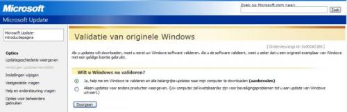 Een vreemd probleem: Het ontvangen van automatische updates is ingeschakeld, en die ontvang ik ook. Klik ik echter op Snel of Aangepast, dan wordt gevraagd eerst een validatie van mijn Windows uit te voeren: Het valideren van mijn originele Windows XP lukt op geen enkele manier: Een gele infobalk verschijnt niet, de activeX kan niet geïnstalleerd worden, ook niet met het uitvoeren van legitcheck.hta. Iemand enig idee wat hier aan de hand is en hoe dit kan opgelost worden?