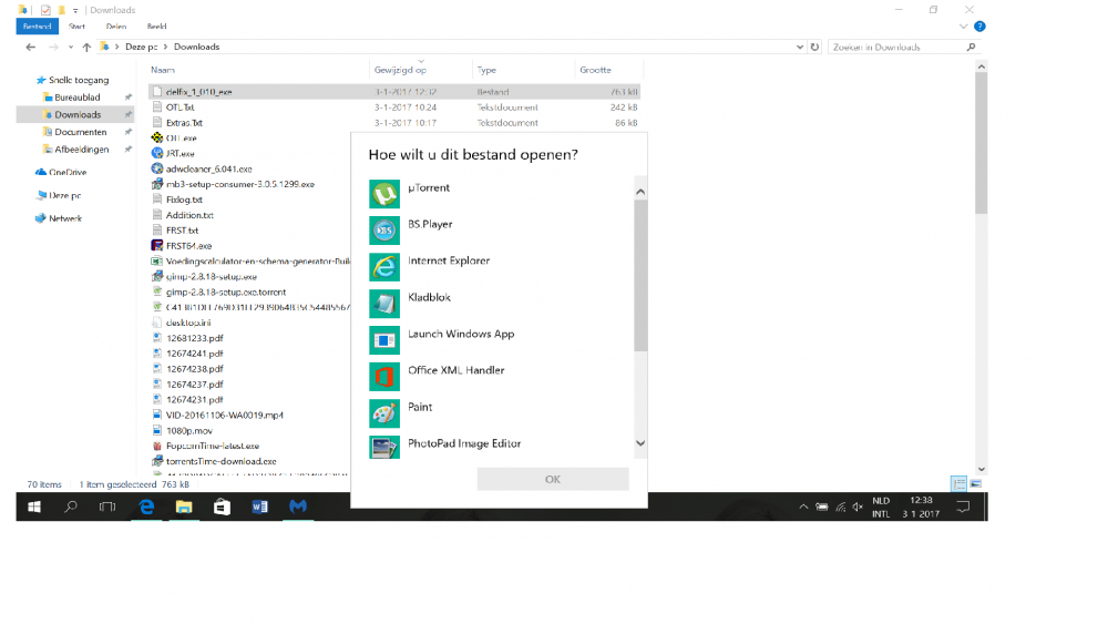 Zie de bijlage weer! Ja bij de vorige stap zag ik nog 1 chinees programma bij mijn overzicht staan maar die is nu weg. Het raketje is ook weg van mijn bureaublad. Dus het lijkt erop dat alles weg is? Kan zoiets nog zomaar weer terugkomen? En moet ik al die gedownloade proramma's van malware gewoon op mijn laptop laten staan? 01032017_120741.log