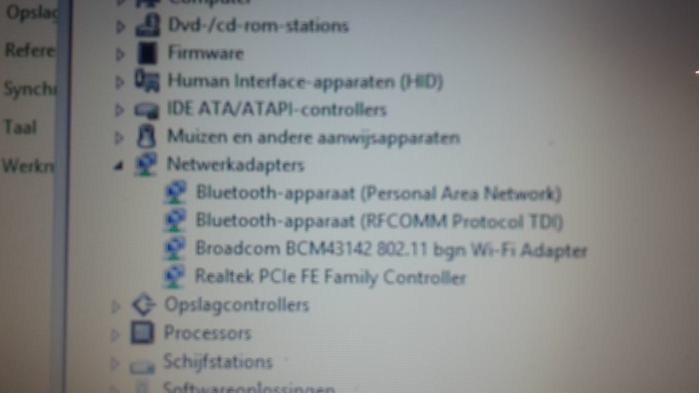 3. Hallo, Ik heb sinds een tijdje het probleem dat mijn laptop af en toe geen wifi meer lijkt te vinden. Niet dat hij geen beschikbare netwerken aangeeft, maar echt totaal geen wifi meer. Ik kan de optie 'wifi' in het menu 'netwerken' zelfs niet meer kiezen. Heb enkel nog de keuze 'ethernet' over. Het kan dan zo zijn dat er plots wel weer wifi mogelijk is en dan verbindt de laptop terug met mijn netwerk. Op onze andere toestellen is er geen enkel probleem met de wifi. Nu heb ik op het WWW eens wat opgezocht en ik kom tot het volgende: Wanneer de wifi werkt op de laptop, is er een 'netwerkadapter Broadcom BCM43142 802.11 bgn Wi-Fi Adapter' beschikbaar in mijn apparaatbeheer. Wanneer de wifi wegvalt, en ik dit opnieuw wil controleren, blijkt de netwerkadapter plots verdwenen. Logischerwijs kan ik ze dan ook niet updaten of controleren op nieuwe stuurprogramma's. Heropstarten helpt dan ook niet, enkel afwachten en als ik geluk heb komt het dezelfde dag nog terug. Nu zit ik echter al een dag of 3 zonder netwerkadapter en dus ook zonder wifi. Ik behelp me voorlopig met een ethernetkabel, maar die ligt door m'n hele huis en zo kan het ook niet blijven duren. Iemand enig idee hoe ik mezelf kan behelpen? Kan ik dit afzonderlijk downloaden en installeren? Wanneer ik deze probeer op te zoeken, vind ik echter niet direct iets terug ... Alvast bedankt, Crutors