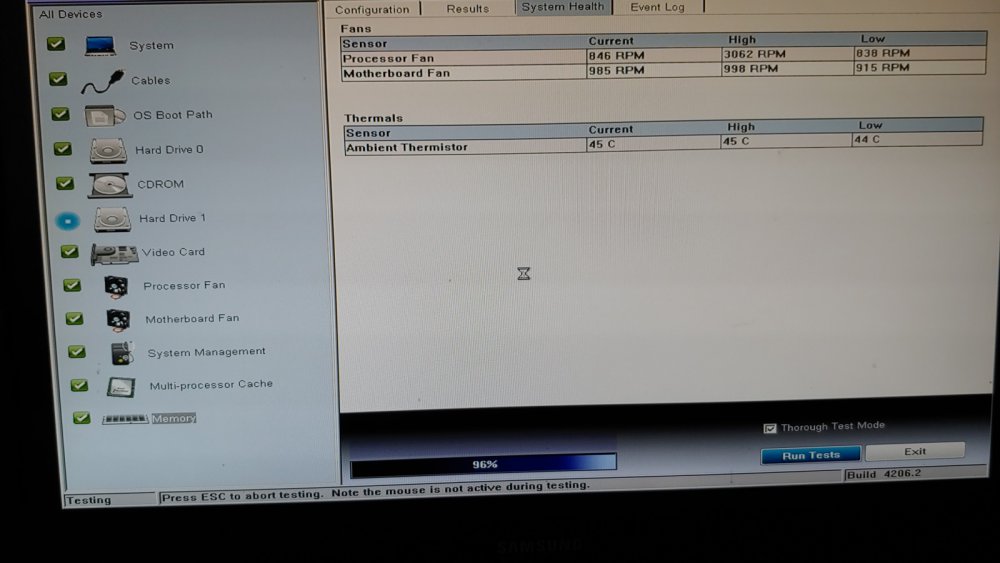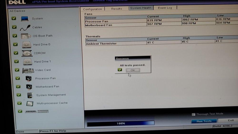Zoals altijd als ik dat heb, een half uurtje later start hij zonder problemen (hoewel) Ik deed de ingebouwde test, en alles was ok, zoals bijgevoegde beelden zeggen. -