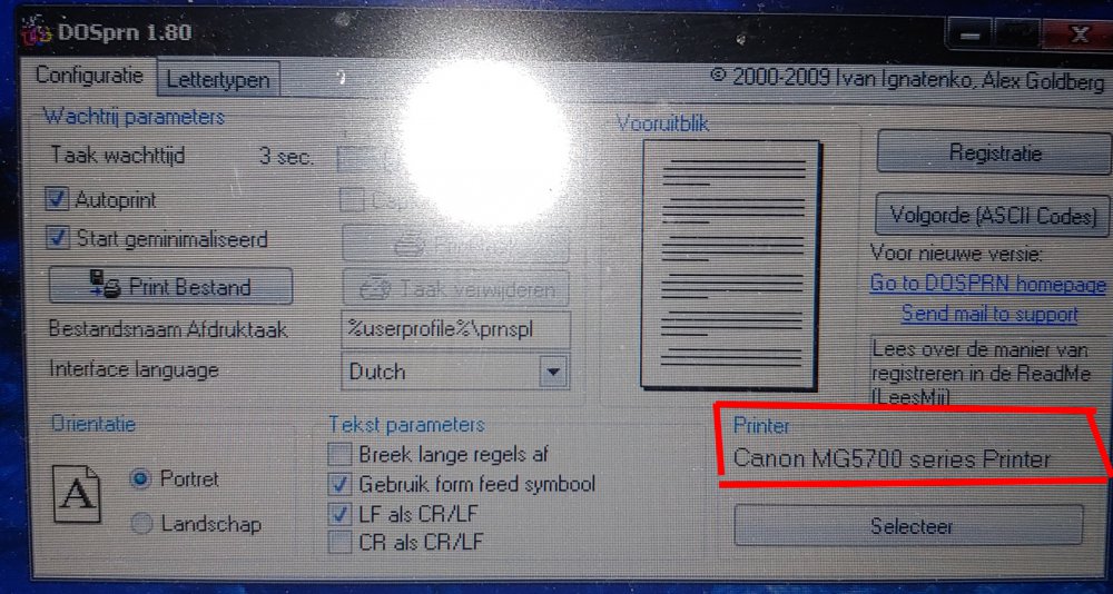 ik gebruik set print on. Het is voor mij wel een beetje ingewikkelder, want ik werk niet met gewoon XP, maar met een XP in een Virtuele Machine. maar die dosprint werkt heel goed. ik kreeg op zeker ogenblik wel een vraag om een licentie te betalen, en omdat ik geen tijd had heb ik dat ook gedaan, maar ik denk dat dit wel te omzeilen was.