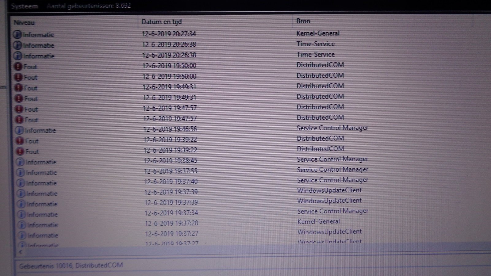 Ik heb ondertussen ontdekt dat in beheersgebeurtenissen er tussen 15/9/2018 en vandaag 3.955 gebeurtenissen zijn. Hierbij valt distributedCOM en Kernell procesor power op.