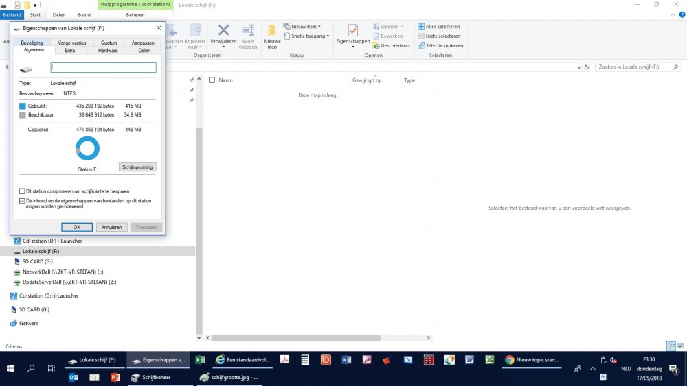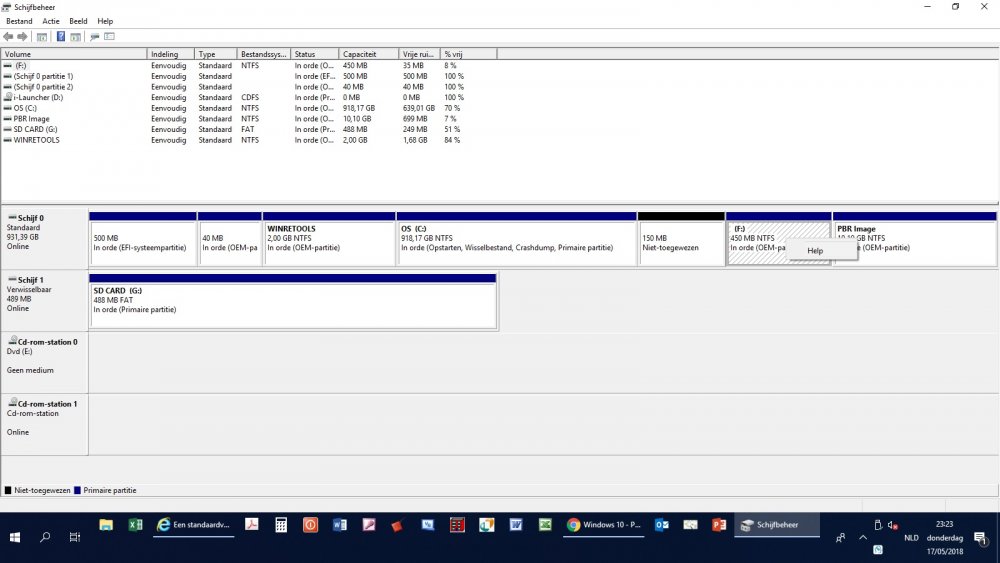 Beste, na de installatie van de recentste update van Windows 10 deze ochtend (wat met horten en stoten verlopen is; PC leek zeer onstabiel en is enkele malen vastgelopen en herstart) krijg ik steeds links onder een pop up te zien dat er onvoldoende schijfruimte is op station F. via verkenner lijkt de schijf "leeg" doch eigenschappen van de schijf toont aan dat er slechts 35 mb vrij is dit is waarschijnlijk een systeempartitie? Via schijfbeheer heb ik mijn C 150 mb kleiner gemaakt en dacht dit toe te voegen aan de F maar dit laatste lukt me niet(het rechts klik menu geeft enkel de opite help