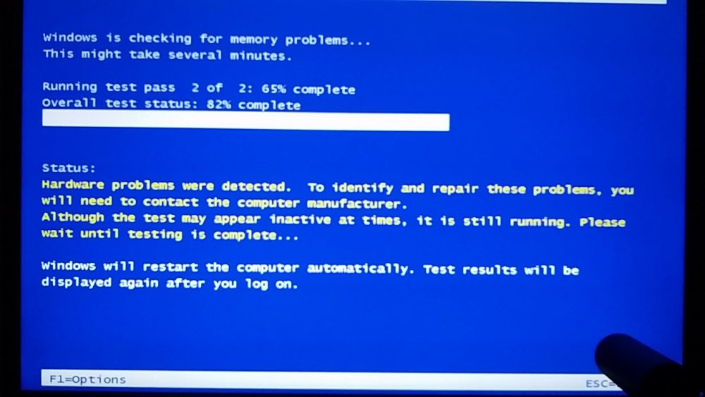 2. Hallo iedereen, Ik heb zonet de Windows Memory Diagnostic tool gerunned en kreeg jammer genoeg bij de eerste test van de 2 al een melding dat er corrupte hardware is (zie eerste screenshot). Toen de pc bijna klaar was met de volledige test (en volgens mij dus wou rebooten) kreeg ik een volgende foutmelding (zie tweede screenshot) waarna de pc gewoon uitviel. Heb hem na enkele seconden terug opgestart en nu doet hij het weer. Wilt de melding van corrupte hardware tijdens de memtest sowieso zeggen dat er een memory stick stuk is (ze zijn immers nieuw sinds afgelopen zaterdag)? Moet ik dan best de test opnieuw doen met telkens maar 1 stick RAM er in om te zien aan de welke het ligt? Ik veronderstel dat ik er nog wel garantie op moet krijgen als er al 1 vanaf het begin stuk is? Groeten,
