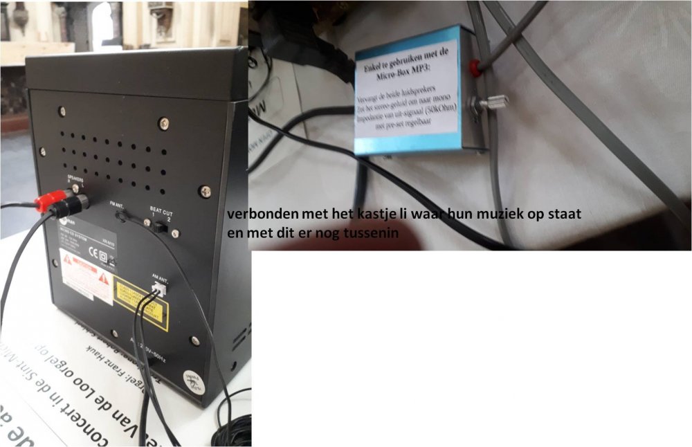 verbinding maken tussen oude 5 din male aansluiting naar eigen versterkerbastet reageerde op bastet's topic in Archief Multimedia ik ben niet zeker van de aansluitingen van het kastje naar de kerkversterker, sorry; we gaan nog eens een keertje alles bekijken en fotokes maken of misschien kan er iemand naar d ekerk komen kijken en daar alles oplossen... tegen betaling uiteraard. de kerk is in Leuven en misschien is er wel iemand dichtbij die alles zou kunnen fixen op een veilige en goede manier; enfin, dat hoop ik van ganser harte; Wie weet is dat de beste oplossing. Moest je iemand kennen of het zelf willen avonturen.... heel graag; dan spreken we wel een keertje af. Of.... de kerk is alle dagen , behalve maandag, open van 10.00u tot 16.30u en dan kan men alles bekijken; behalve mijn versterker want die staat veilig opgeborgen. Mochten we kunnen afspreken, dat zou ik echt heerlijk vinden. Ik verneem het dan nog wel. Het is de sint Michiels-vredeskerk in de naamsestraat in Leuven. we gaan er verscheidene workshops organiseren en dan is het toch belangrijk dat er mooie en degelijke klank is. ik ben benieuw en alvast heel , heel hartelijk bedankt voor alle moeite