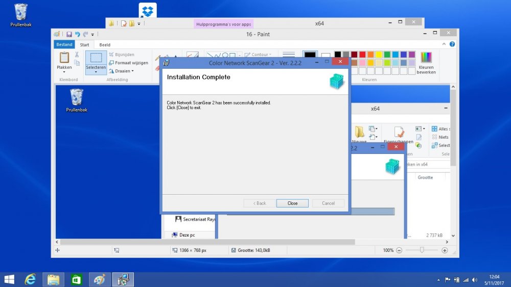 @stegisoft : Ik zit net zoals jij bij apps (programla’s), alwaar een app bijstaat ‘Color Netwerk Scangear 2 Tool’ en wanneer ik daarop klik zie ik bovenstaande pop-ups... Op dit ogenblik verwijder ik alles van pc, en zal ik opnieuw alles zeer aandachtig installeren. Dat laatste programma (UFRII printer driver) kreeg ik niet meer verwijderd... Ik hoop echt dat de scanner werkt! Thx