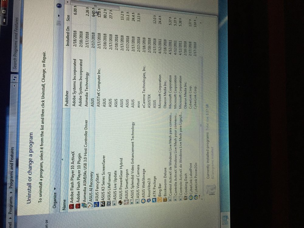 Oke! We kunnen de volgende stappen maken. Laptop sloot zichzelf af, ik deed ‘m aan, liet windows in normale modus opstarten en krijg nu een lege laptop met nog een hoop ASUS rommel en reclame! -