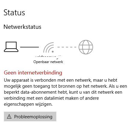 Het zou mooi zijn geweest als het zo simpel was, maar het maakt niets uit helaas. Ik heb wel goede verbinding met de modem, maar ik heb gewoon geen toegang tot het internet op de één of andere manier. Dit wordt er steeds aangegeven. -