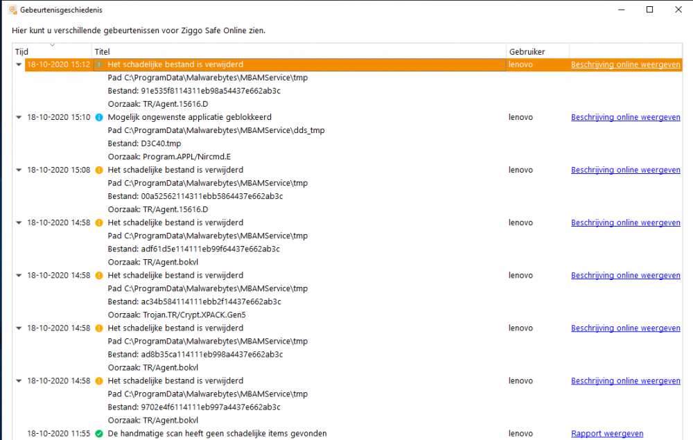 Nu ben ik weer de F aan het scannen en heeft Ziggo 3 schadelijke bestanden verwijderd. Ik vraag me dus werkelijk af hoe die op de F komen want die scan ik regelmatig en op de E word nooit war gevonden. -