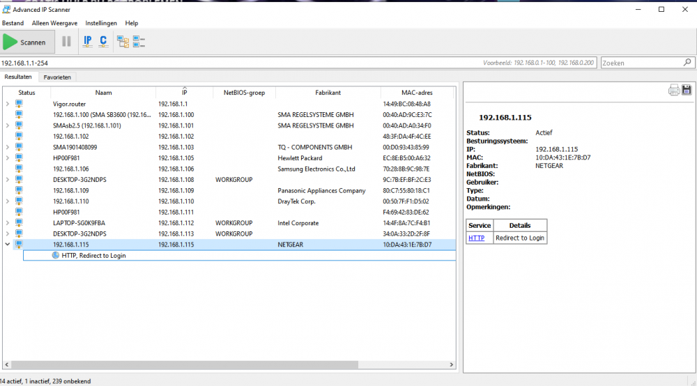 11. En ter info, hoe het er uitziet bij een privé-netwerk (een van de mijne trouwens, mét een Netgear apparaat.) Je kan hier het Netgear IP uitvouwen en inloggen via http (dubbelklikken). Normaliter kom je dan op de inlogpagina van je AP en kan je je instellingen (SSID, paswoord...) wijzigen- good luck!