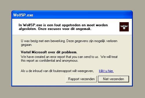 "In ('naam van het spel'.exe) is een fout opgetreden en moet worden afgesloten. Onze excuses voor het ongemak".