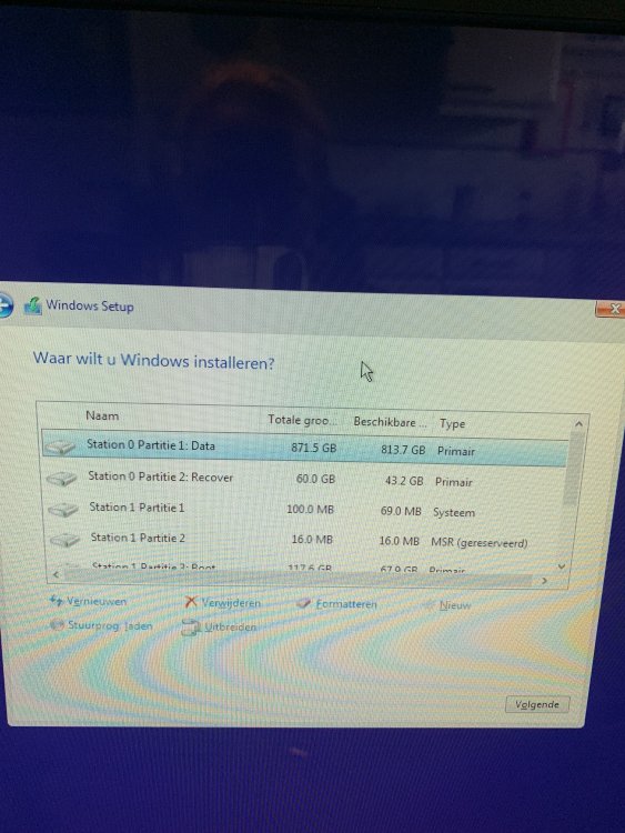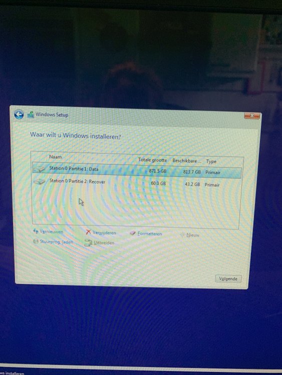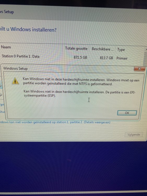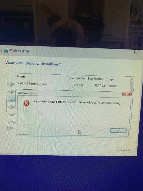 15. Opnieuw installatie opgezet. Nu een foutmelding bij het verwijderen van de partities.