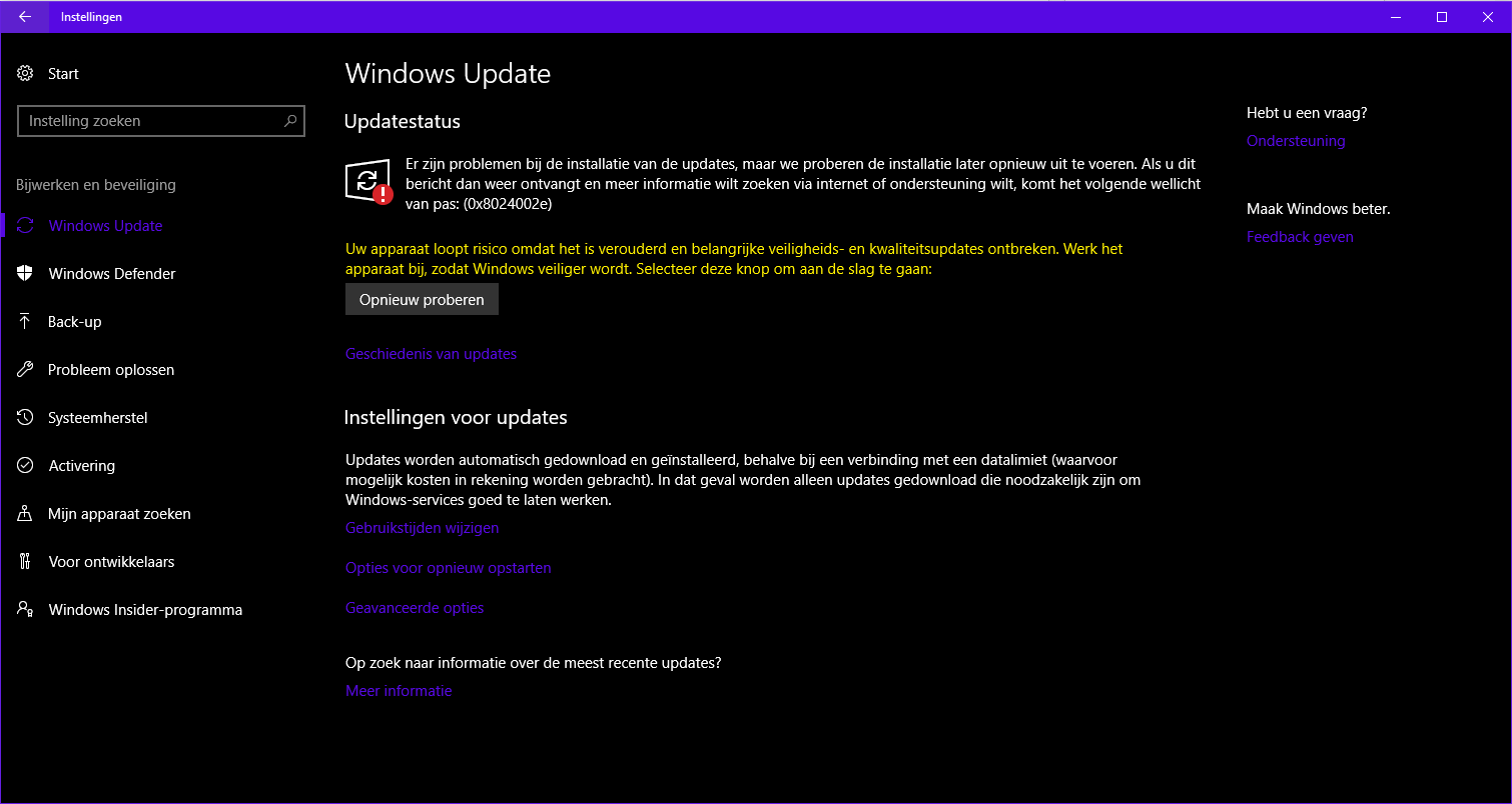 Ik kan Windows Update niet vinden.. Staat niet in het configuratie scherm of PC instellingen.. Met zoeken krijg ik alleen Programma's te zien ( Gezien mijn vorige ervaring met Windows Update wil ik een backup van mijn bestanden maken voor ik de Win Update daadwerkelijk zou uitvoeren. Heb alleen nog geen externe schijf daarvoor, aangezien het om ruim 1 TB aan data gaat )