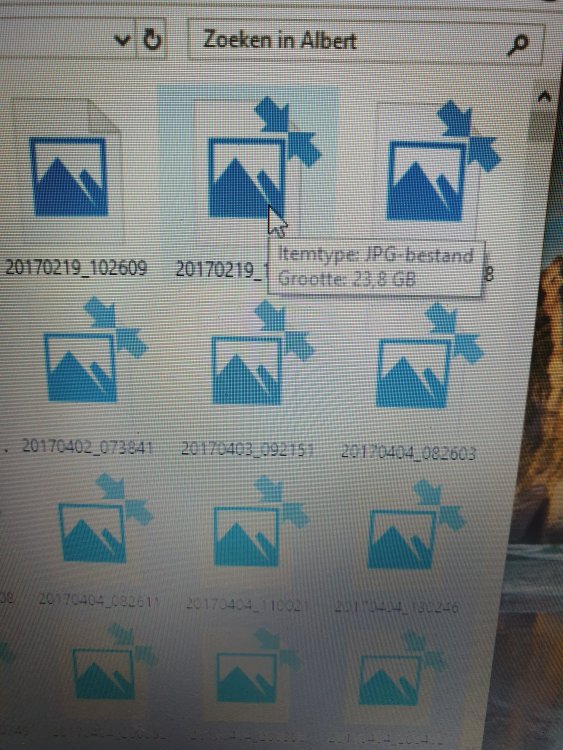 2. Goede, ik zit met een probleem. Ik heb allemaal fotos van mijn zoon die normaal z'n 2 a 3 mb zijn, maar nu zijn ze in 1 x 23gb per stuk, terwijl mijn harde schijf niet groter is dan 200 GB, als ik al mijn fotos selecteer zit ik rond de 1tb. Wie kan mij helpen