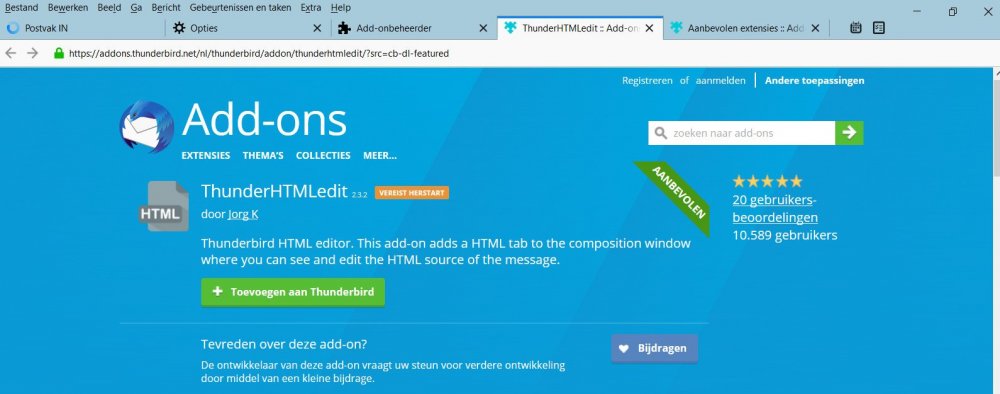 17. Ik heb Add - Ons HTML voor thunderbird ingesteld. zie printscreen
