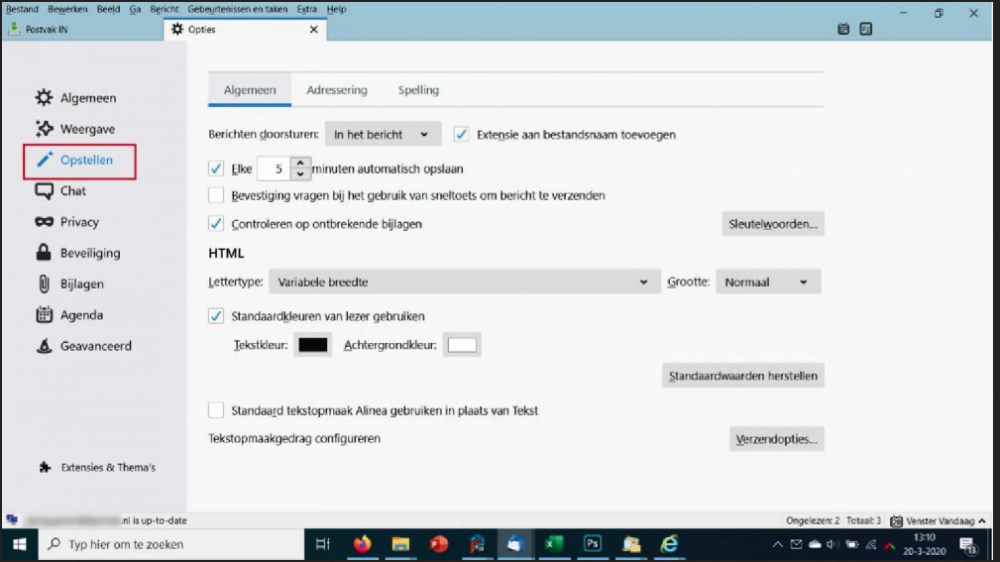 19. Ik kan wel opstellen vinden maar geen beheer / Voorkeuren . ( dan hebben we het wel over Thunderbird) Wel zoals in onderstaande printscreens. Grt Gerard
