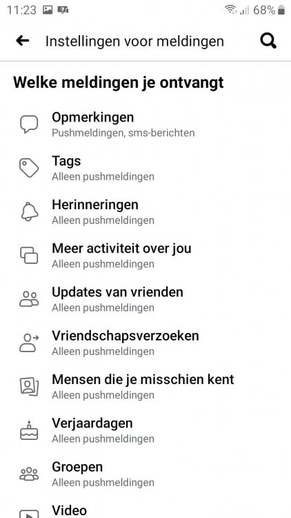 Facebook meldingBrenda Vande Putte reageerde op Brenda Vande Putte's topic in Archief Tablet- en Smartphone meer dan deze instellingen vind ik niet terug ik heb al geprobeerd om facebook alle instellingen aan te zetten, opnieuw opstarten en terug naar mijn eigen instellingen te gaan zoals push, tag ... terug naar enkel bericht maar brengt ook niets op, misschien best inderdaad naar fabrieksinstellingen en eens van 0 beginnen zo is er een totale opkuis gedaan hé