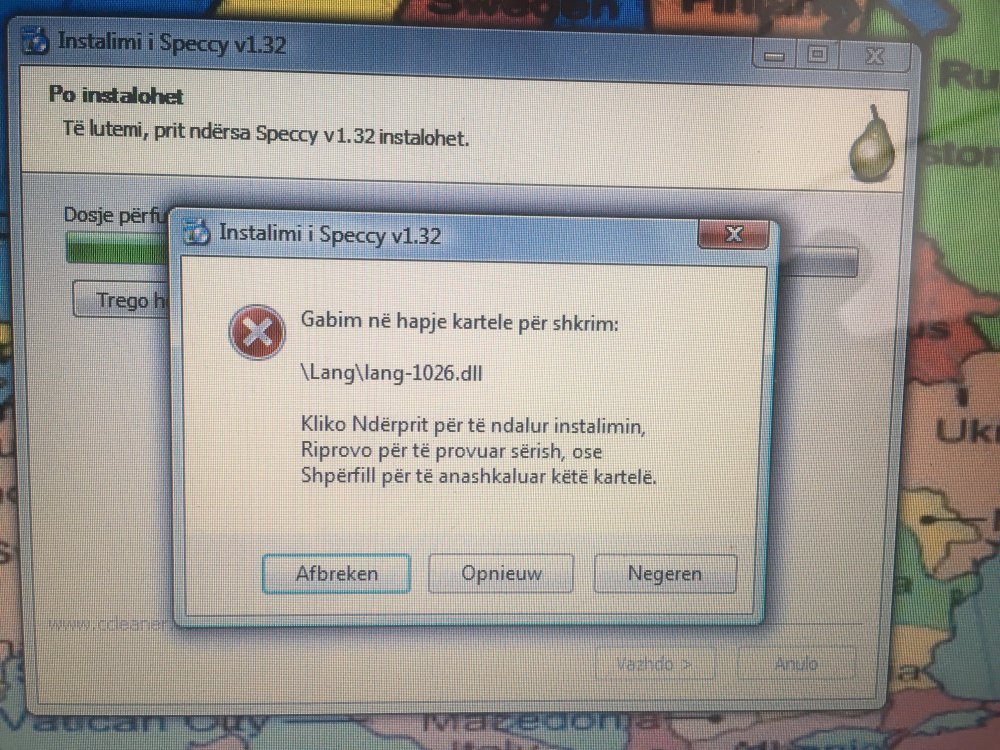 Ik heb Speccy gedownload, op usb overgebracht naar de laptop zonder internet en daar geopend, maar de installatie start niet. Bij het uitpakken krijg ik een foutmelding. Zie hieronder, daarna zit het vast bij bestand lang-1026.dll