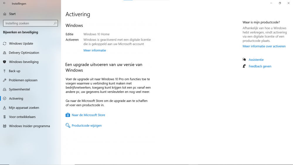 1. Nee, die vraag is niet gekomen. 2. Dus er is geen herinstallatie gebeurd. Windows was al geactiveerd na de aankoop van de pc. Zie plaatje :