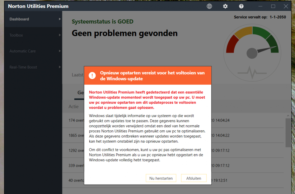 Dag Passer, geen enkel herstelpunt lukt : foutmelding windows herstelpunt mislukt. Alt-F4 doet ook niks. Nieuwe windows updates die ik wil installeren worden ook, na heropstarten, niet aanvaard, en dan start de pc terug opnieuw op, en verwijderd de gedownloade windows updates en gaat dan weer in dezelfde herstel-loop rondcirkelen.