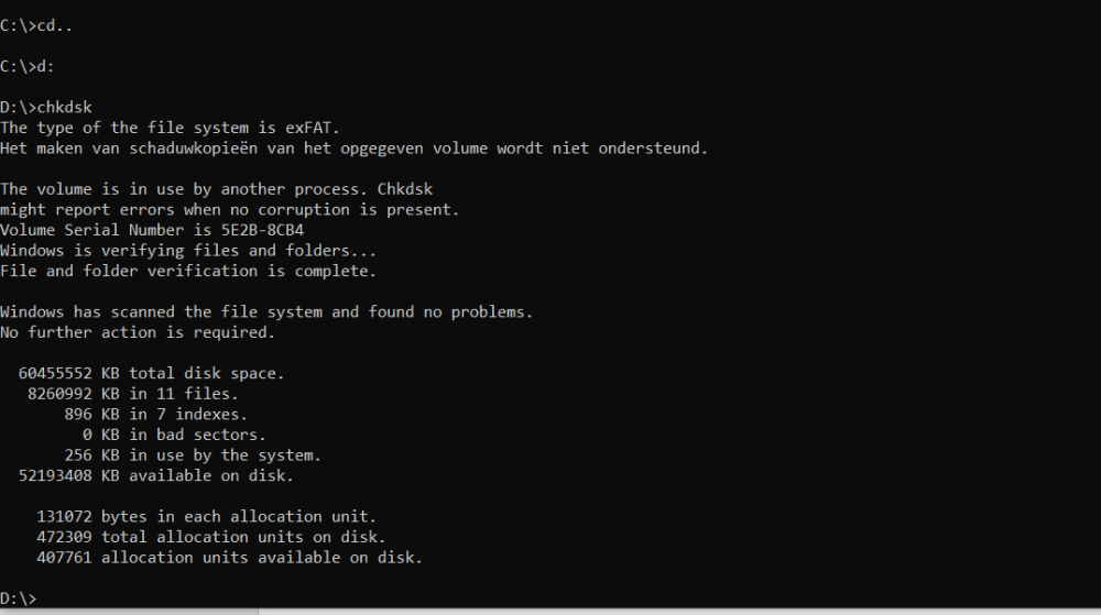 @Nokiaprox Ik heb dit zojuist geprobeerd en hij geeft de onderstaande melding heb het al 2keer geprobeerd maar kan nog steeds niet formatteren of schrijven. @passer chek file system gaat niet ook niet na het idee van nokiaprox -
