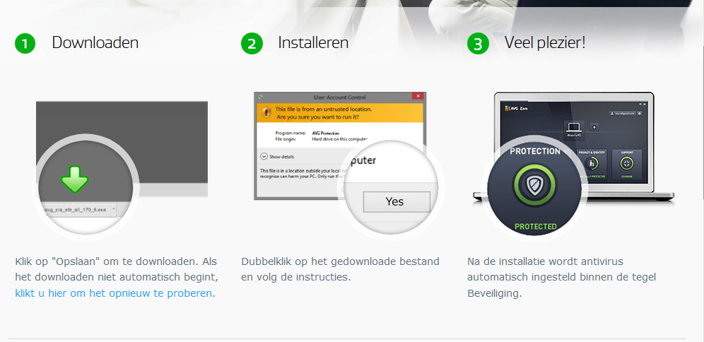 heb het gedownload maar krijg wat anders in beeld de als ik op 'aangepaste installatie' + doorgaan en zet een rondje bij 'basicbescherming' +doorgaan dan krijg ik proefversie van 30 dg en daarna moet ik kopen heb op basis bescherming gedrukt daarna op nieuw opgestart en dan krijg ik op bureaublad AVG en dan plaatje twee... sorry begrijp het niet helemaal ik heb wel windows 7 en geen 8.1 alvast bedankt