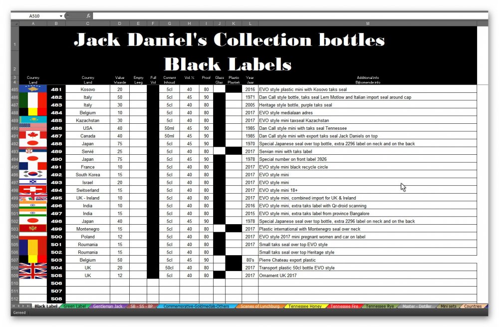 Vrienden, ik heb een zeer uitgebreide collectie van Jack Daniels flessen, deze zitten in een excel file opgeslagen (zie screenshot) doch dit is vrij tot heel simpel en zou deze graag in access krijgen. Doch mijn kennis van access is 0.0%, wat ik graag zou bekomen is te zien in het tweede screenshot dit om de eventuele helpende hand een idee te geven wat ik graag had bekomen. De stijl van het access bestand kan / mag beetje aangepast worden indien nodig. Waar staat keuzemenu zou het ook geen ramp zijn als deze manueel moet ingeven worden ipv van een keuzemenu. Aangezien ik iedere nieuwe aanwinst toch direct ingeef in mijn excel bestand, kan ik dat even goed in het acces bestand doen. Belangrijkste is natuurlijk dat de volledige excel file kan geimporteerd worden zonder veel te moeten aan te passen in access, het gaat over +-800 verschillende flessen....en verschillende sheets ook. De eerste rij met land vlaggen zijn allemaal JPEG en of PNG bestandjes, de kolom met de beschrijving heeft al heel veel hyperlinks naar de juiste foto's maar niet alles is hier gedaan. Graag hoorde ik jullie mening of dit te doen zou zijn? Alvast bedankt voor jullie tijd.