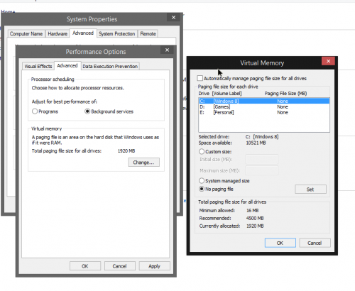 Het pagefile probleem is plotseling weg? Al de rest blijft gebeuren... -