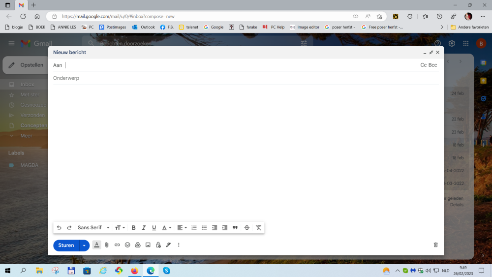 Goeie morgen iedereen... Hopelijk zit ik hier juist met mijn vraagje, het is hier toch zo groot, even wennen hรฉ....๐ Gisteren heb ik dus een Gmail adresje aan gemaakt, maar als ik een mail krijg, of ikzelf wil een mail schrijven, dan is dit telkens zo'n klein blad. Ik heb ook nog een Outlook en Telenet adresje en die mails vullen heel mijn scherm, net zoals hier ook. Is dit nu normaal, al gek heb ik mij gezocht om die e-mails groter te maken, maar sorry, ik vind het echt niet. ๐ณ ๐ Kan er mij soms iemand helpen aub? Veel dank namens Becca, het printscreen staat hieronder en langs beide zijkanten zie je mijn bureaublad staan.