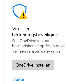 Goeie morgen iedereen... Hopelijk zit ik nu op de juiste topic, ik zie hier toch One Drive bij staan. ๐ Ik heb dus problemen met die One Drive, ga het zo duidelijk mogelijk proberen uit te leggen. Op mijn taakbalk staat rechtsonder zo'n schildje (Windows beveiliging) dat altijd groen moet staan aangevinkt. Maar zo'n 2 keren in de maand komt er een geel vinkje op, met de woorden (veiligheidsmaatregelen vereist). Dan moet ik die One Drive instellen met mijn Outlook adresje en dan begint die One Drive te lopen om er mijn documenten en foto's en zo in te steken, wat ik niet wil, dus sluit ik hem af. Want dit zie ik staan bij die One Drive, vandaar dat ik dat ding weg wil. (zie onderaan) Deze morgen stond hierop HOE je die One Drive kan wegdoen in rode letters, maar ik vind het niet meer. En ook wilde ik dit niet zomaar doen, zonder jullie goeie raad, ik zou toch niet graag al mijn documenten kwijt zijn. Onlangs heb ik een laptop gekregen (ook een Win 10) en daarvan heb ik die One Drive verwijderd via "programma's en onderdelen", One Drive was weg, maar mijn documenten stonden er nog. Kan er mij soms iemand raad geven aub ? Dank u vriendelijk namens Rebecca. P.S. : Mijn bestanden kan ik nooit in het midden hierop zetten, dan werkt mijn cursor niet meer, sorry hoor.