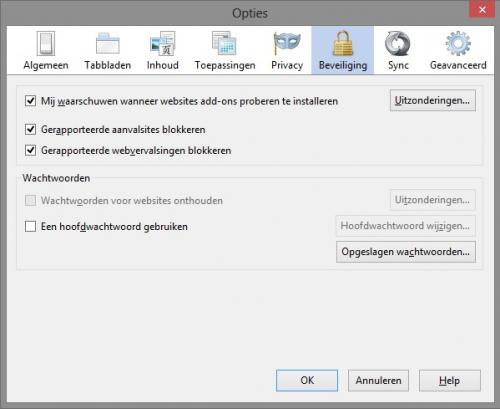 De webbrowser van mijn nieuwe laptop lijkt niet in staat wachtwoorden e.d. op te slaan. Het vakje "Wachtwoorden voor websites onthouden" (onder Extra -> Opties -> Beveiliging) staat in het grijs waardoor ik het niet kan aanvinken. Hoe kan dit?