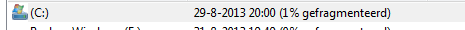 oke maar ik zie de letter C niet staan betekend het dan dat de ssd schijf uit staat voor defragmentatie ik zie hier ook dat de ssd 1% is defragmenteerd.