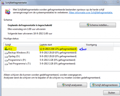 ja maar de C: ssd schijf is niet uit te zien en aan en uit te vinken vanaf de venster. schijfdefragmentatie: schijven voor schema selecteren zie afbeelding.