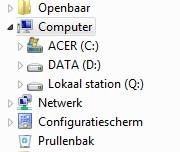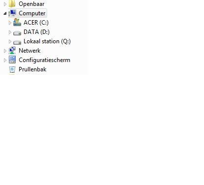 22. heb dit net gedaan, ik hoor de laptop 'lopen', maar er wordt niet naar een cd gevraagd. Is het normaal dat deze 'scan' gewoon stopt, zonder verslagje of zo? na ongeveer een halfuur nog steeds geen verslag of melding... Wat ik nog vergeten zeggen was; lokaal station Q (zoals je hieronder ziet) stond vroeger ook niet bij "Computer", ik weet niet of dit met het probleem te maken heeft? Als ik op 'lokaal station' Q klik, krijg ik dit: