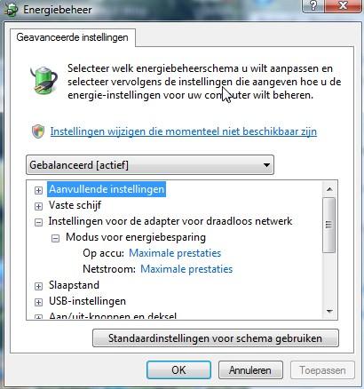 2. Hallo, wanneer ik mijn laptop toeklap en deze op standby gaat, krijg ik geen verbinding meer met internet na het opnieuw openklappen. Ik verhelp dit door de internet kabel even uit de laptop te halen en opnieuw in te steken. Wat ik na enig gegoogle al geprobeerd heb; via energiebeheer de instellingen voor de adapter voor draadloos netwerk op maximale prestaties zetten. Ik heb dit gedaan bij alle energiebeheersschema's. Dit helpt niet; maar aangezien ik niet draadloos surf, ligt het probleem waarschijnlijk elders? alvast bedankt voor de hulp!