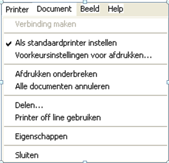 staat er zo'n printericoontje in je taakbalk? even dubbelklikken daarop dan menu "printer" en dan zou het er ongeveer zo moeten uitzien (zie bijlage) zeker niet "afdrukken onderbreken" of "printer offline gebruiken" aanvinken.
