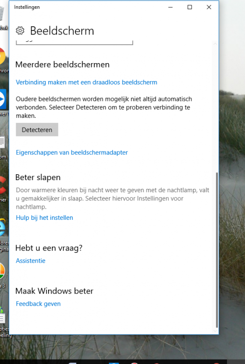 Ik heb een 17 inch beeldscherm laptop van HP. Inderdaad heb ik de lettergrootte naar 150 % gebracht, omdat ik dat wel prettig vond , Dan hoef ik niet zo snel mijn leesbrilletje op !!!!!!! Maar misschien is 125% ook goed , of misschien in dit geval beter ? De laptop is nog geen jaar oud . Verder viel mij ook op , dat als ik de laptop op accu laat draaien dan wordt de helderheid gedimd Is dat normaal ? Je ziet bij mij onderaan : draadloos beeldscherm , waar zie je dat , ik ben mij nergens van bewust is dat nieuw ? En toch denk ik , dat het aan de wifi op de camping ligt want op dit moment is het goed . Verder ben ik wel met de startknop aan het knipperen geweest, of dat geholpen heeft ? In welk tempo moest ik dat doen ?