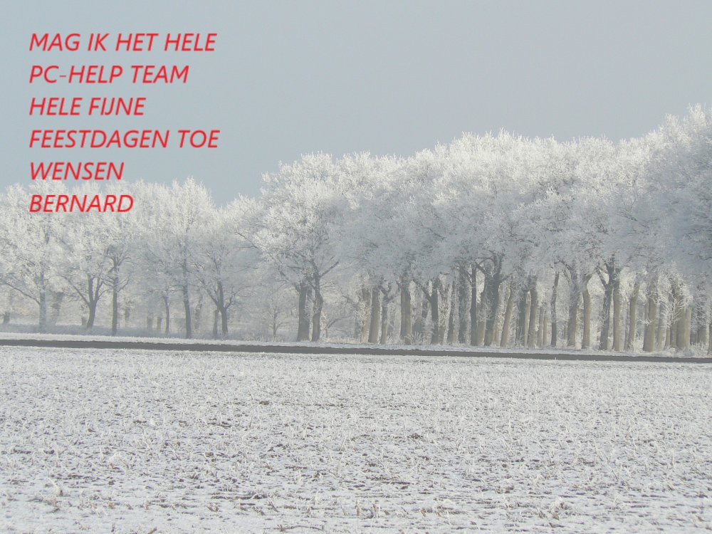 Nog even antwoord aan Porrelaar . Inderdaad ik heb het met Paint gedaan . Wel kwam ik tot de ontdekking dat je maar een bepaalde hoeveelheid tekst er op kwijt kunt . En alles aan de linker kant . Maar ik was allang blij met dit resultaat .