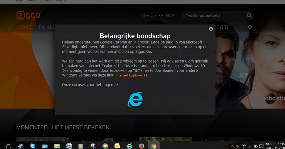 Dat heb ik ook , ik heb IE , en Firefox en Chrome . Maar ik vind Chrome het dichtste bij IE komen . Ik wil toch Ziggo nog eens vragen , hoe lang zo spoedig mogelijk duurt , wnt dit gaat al een hele tijd . Van mijn kant , bedankt