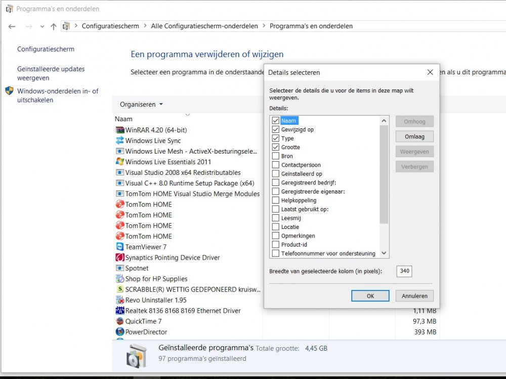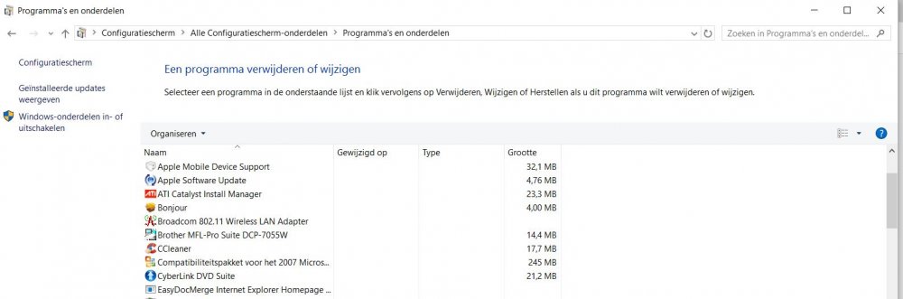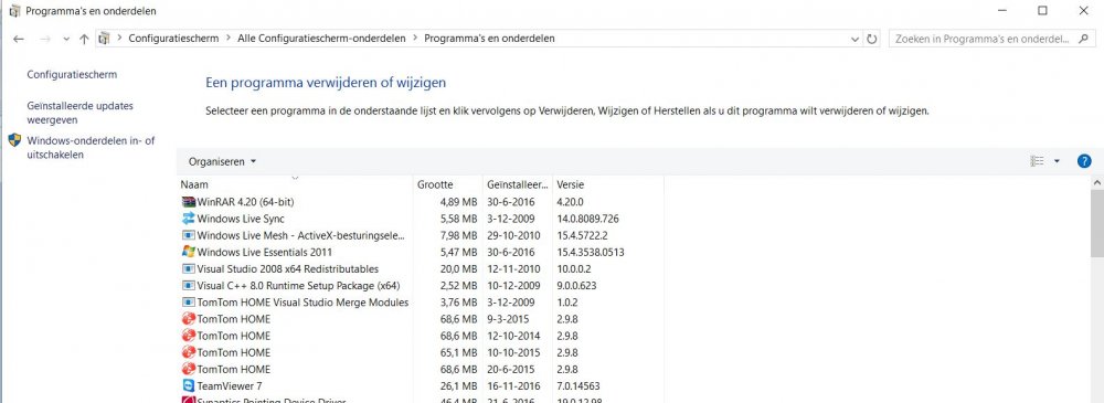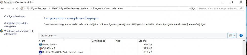11. Als ik mijn configuratiescherm open > Programma,s en onderdelen Dan zag ik altijd wanneer een programma gewijzigd was Nu is deze kolom leeg , kan ik dat weer terug krijgen ?