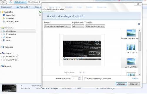 Als ik iets met het knipprogramma heb omzoomd ,waarom kan ik daar dan geen afdruk van maken ? Ik werk als volgt : ik heb iets omzoomd met knipprogramma dat sla ik op onder de naam knipsel dan staat de knipsel in mijn afbeeldingen ik klik dan rechts op de afbeelding ik geef het formaat ( bv. 20 x 25 )aan dan haal ik het vinkje weg bij afbeelding aan lijst aanpassen vervolgens klik ik op afdrukken dan krijg ik een scherm waar ik bestandsnaam moet invullen , en dan opslaan ik krijg dan een scherm met in een flits een groene balk doorlopen en dan stopt het , en ik kan er niets van terug vinden Wat doe ik niet goed ?