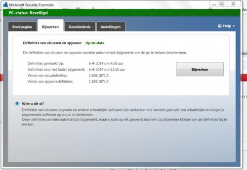 Ik moet regelmatig mijn beveiliging ( microsoft security Essentials )opdracht geven om te scannen . Want dan geeft het mapje rechtsonder in de taakbalk de gele kleur aan , en dan moet ik dus scannen . Volgens mij is dit iets van de laatste tijd , want dit moet toch automatisch gaan ?