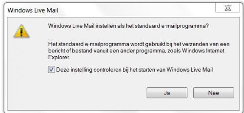 Het schermpje is nu weg , maar het veranderd het beeld niet Iedere keer als ik windows mail open komt het schermpje weer terug , Ik heb nu het vinkje weggehaald , en nu is het schermpje wel weg (?)