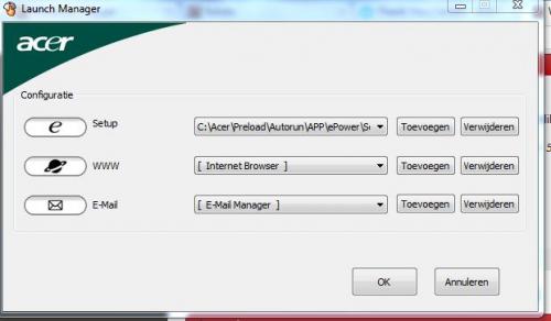 Dag Clarkie, die link die je me geeft is toch ook voor de launchmanager. ik heb deze gedownload en bekom net het zelfde resultaat. Moet ik de LM eens verwijderen via configuratiescherm? en dan opnieuw Powersmart downloaden. Bij de Windows7 Home premium x32 staat de PS niet bij de applications van acer. mvh, Tijl