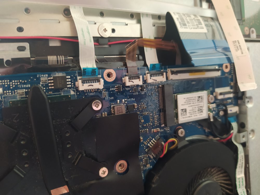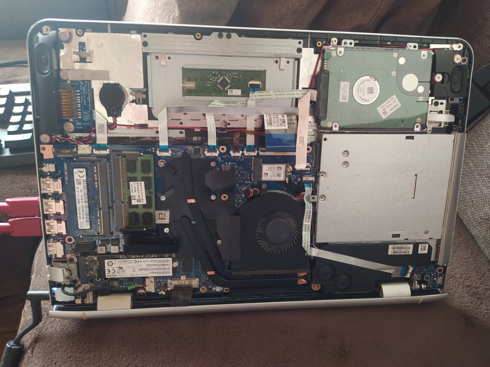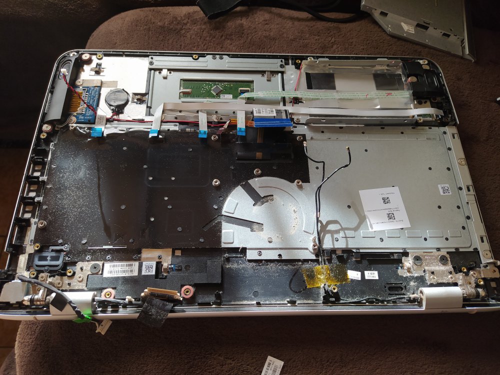 Nog een foto met het moederbord verwijderd. Weet niet goed hoe ik onder dat zwart plastiek kan geraken om aan het keyboard zelf te komen.