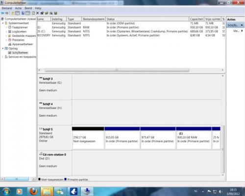 6. Het is een schijf die ik toentertijd gekregen heb van een vriend. Heb er altijd normaal mee kunnen werken. Dacht altijd dat het 1TB was zoals mijn vriend ook gezegd heeft. Los daarvan heeft die steeds perfect gewerkt. Weet niet de reden waarom ze het niet meer doet. Hoe kan ik dit alles in orde maken zodat ik ze terug kan gebruiken en ook de bestanden die erop staan terug zou hebben. Sorry voor mijn onwetendheid, maar op de manier dat je het uitlegt is dit toch een beetje chinees voor mij. Kunnen we het stap voor stap doen om de schijf in orde te krijgen. Dank