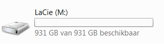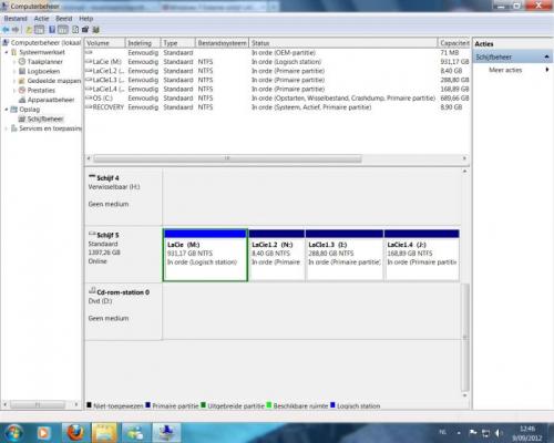 5. Met hulp van mijn zoon is dit het resultaat. De nieuwe schijfnaam is Lacie (M). Ik hoor het vervolg wel